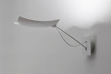 Line voltage LED surface mounted light object by Ingo Mauer. Two ball-joints provide high flexibility and the minimalist design and thin materials of the slightly curved shade gives an impression of a flying piece of paper.