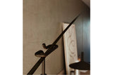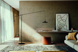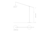 Altura is a projecting floor lamp. Two thin rods, one vertical and a horizontal one made of steel, are connected by a joint. Lightweight materials and