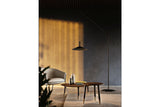 Adjust the height of the shade by sliding the rod through “the knot”. Base, stem and rod in matt black painted steel. Lampshade is painted aluminum.