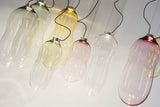 Glass pendant lights in clear, amber, or smoke finish. Structure holder is available in standard Silver aluminum or gold finished aluminum. Custom colours on request. Suspension kit in white or black.