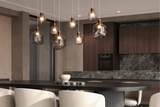 Structure is available in bronze, satin brass, or matt nickel & each pendant houses a 7w / 2700K dimmable LED light source capped in frosted glass.