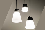 Milk glass enclosed fixture available in 2 sizes. Standard finish is black, white or brass. Custom colours available on request.
