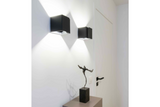 Bent cube shaped wall sconce of solid metal. Create wonderful light details with Ding's up and down light spread on your wall, as well as it's wonderful side profile light detail at the fixture fold.