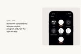 Sunset Dimming creates a warm and healthy light. You can easily control the light using the GRAU app. Falling Sun is made of aluminum – made in Germany.
