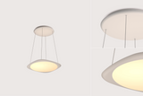 Flying is the floating light disk. Maximum flexibility, height-adjustable and extremely bright with 5000 lumens: Flying illuminates the room evenly upwards and downwards with versatile adjustable light.