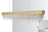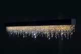 Frozen Eyes Linear pendant is available in 2 sizes - with short (5") OR long (11") strands of crystal and 3 different quality options of crystal. Structure finish is in black, chrome, or satin Brass.