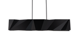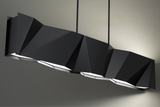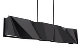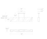 A sleek, breathtaking combination of forms and clean lines from every angle. Sculptural metalwork. Slide-on rectangular canopy with minimal hardware. Six 12” and two 6” down rods included (additional available but sold separately). Slope ceiling adaptable. Hang straight swivels up to 90 degrees.