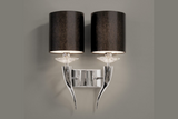 Fabric shaded, soft shaped arms & crystal adorned. This wall sconce is is available in a single or double arm