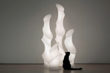 A floor or table lamp that softly illuminates any indoor space. The name Minima tells the story of its surface; its sinuous form is the minimum 3D surface between 2D curves. Crafted using a proprietary process, Minima’s subtle illumination results from graded filtration through its diaphanous skin.
