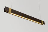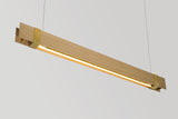 Mr. Beam 1S is a linear pendant light mimicking the concept of an I-beam. Central light source is framed in oak wood and capped and accented in a Black, White, or Brass band on each end.