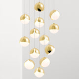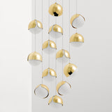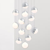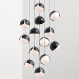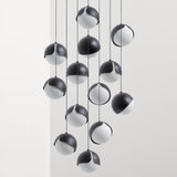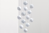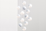 Ohm is an innovative take on a conventional sphere, it's orbiting shade invites curiosity & interaction and each opal glass orb casts a warm ambient glow, suspended in space by slim cables.
