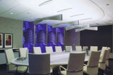The sculptural form, created by rotating ruled surfaces that sweep from a vertical at the ends to a horizontal in the center, makes for a dynamic element that changes its appearance when viewed from different angles.