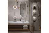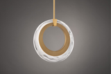 Artisanal wispy glass wraps round an aged brass finished ring like a luxurious earring for the home. A curved concept and invitation to embrace luxurious living with unparalleled style. Modern aesthetic with an artist touch for this mini pendant.