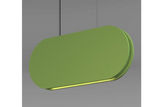 Architectural sound absorbing Eco Felt Acoustic panel covered light fixtures in an oval, a cloud or trapezoid shape. Light source is linear with single down light or dual light emission.