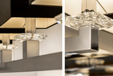 An elegant, chic wall sconce that will amaze you from every angle. Each arm is accentuated with a beautiful crystal element and square fabric shade.
