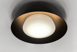 Surface mount fixture suitable for ceilings or walls. Body finish is available in a range of standard colours. Glass centre is a mat white opal glass.