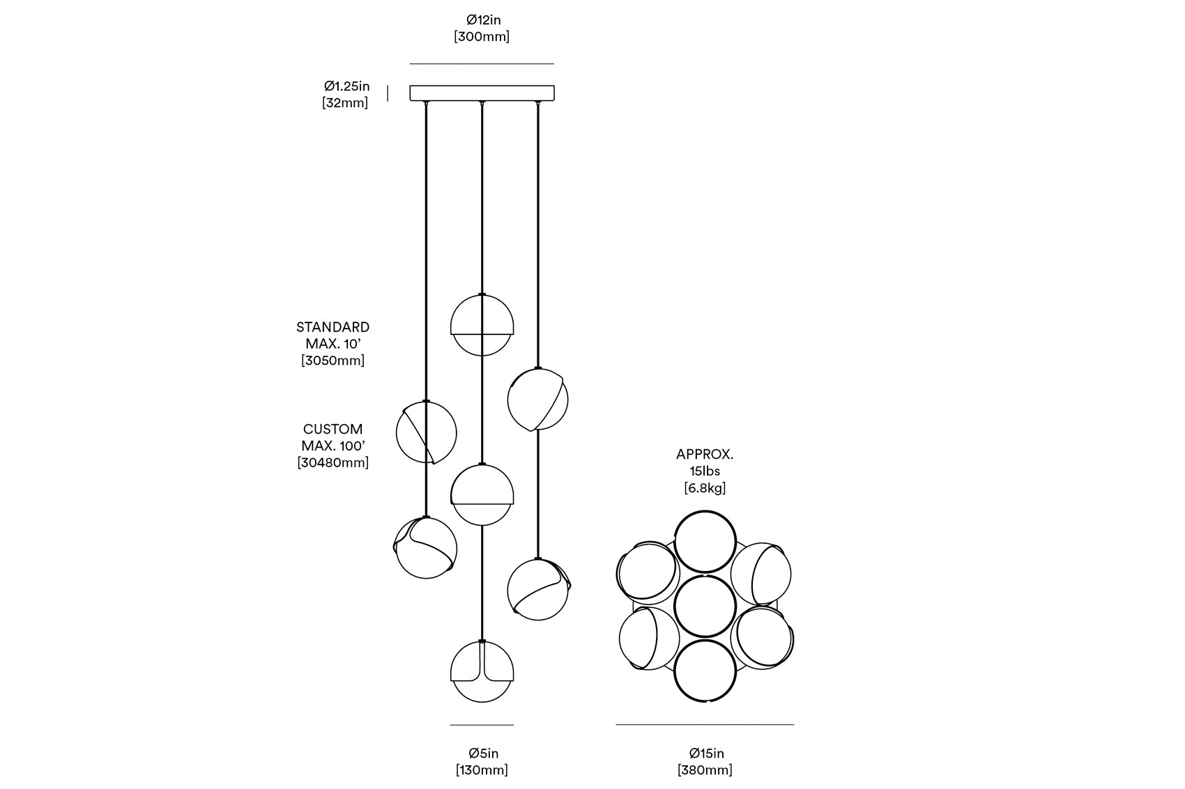 An innovative take on a conventional sphere, the Ohm’s orbiting shade invites curiosity & interaction. Each opal glass orb casts a warm ambient glow, suspended in space by a slim suspension cable.