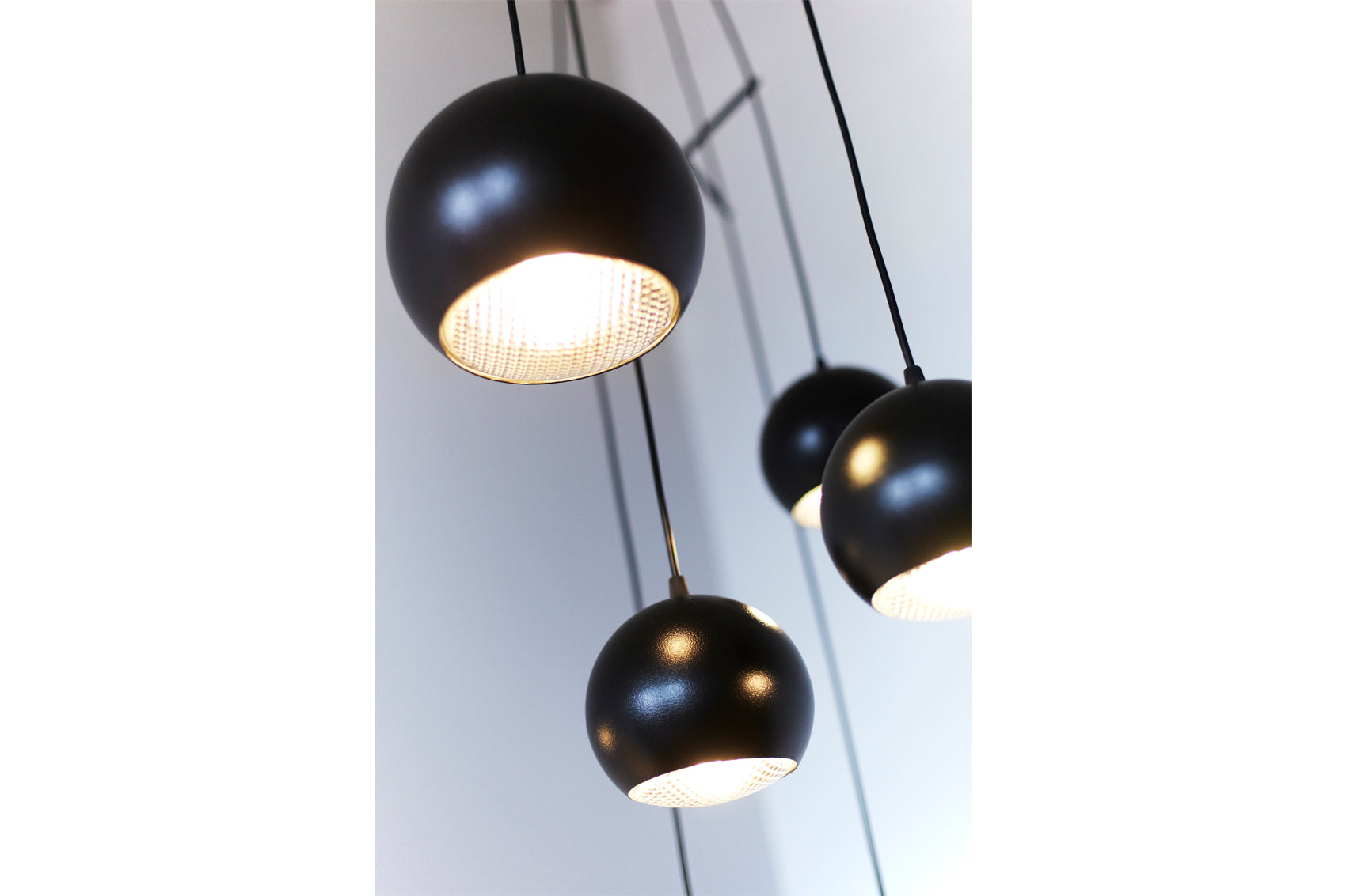 The Deadstock Cannonball Pendant is comprised of three spherical shades salvaged from a defunct lighting factory. A three-armed spreader holds the shades 120 degrees apart while a wide angle glass diffuser provides even lighting.