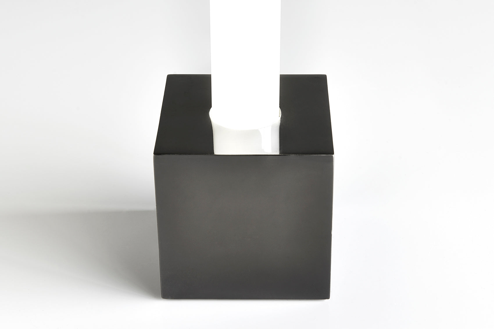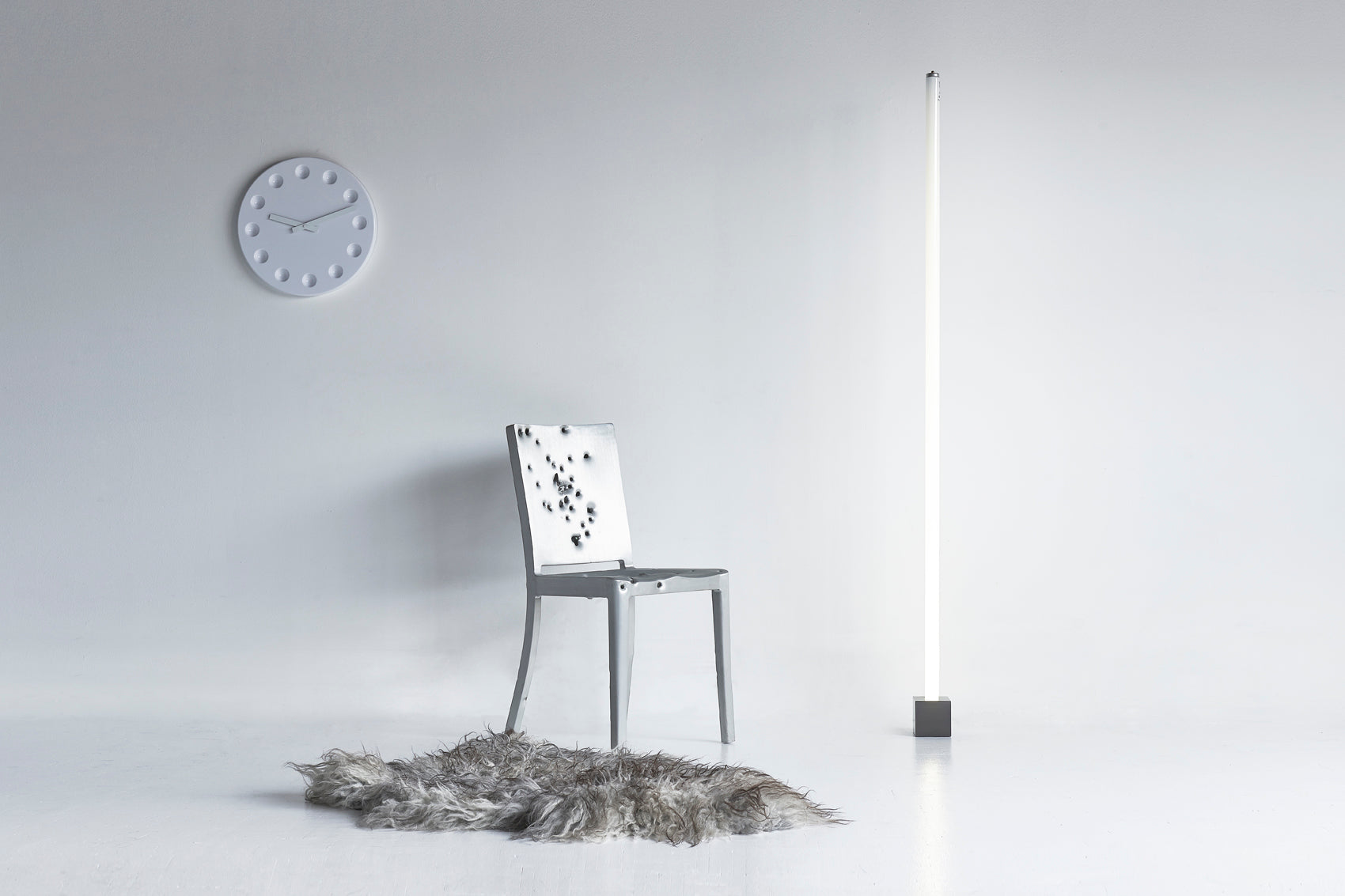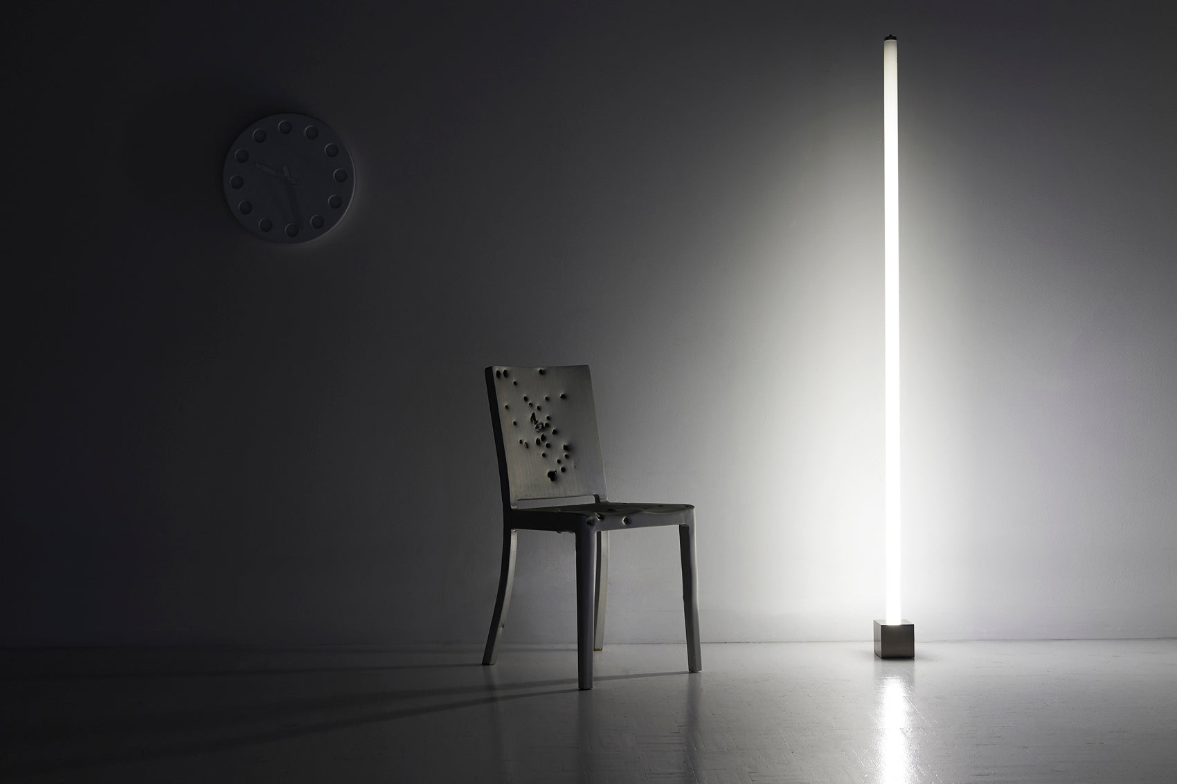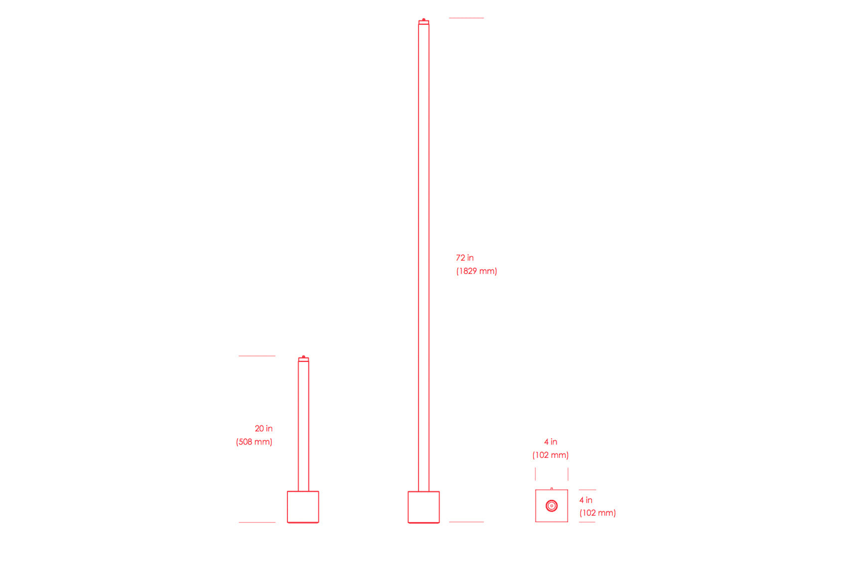 The Induction Tube Light comes with a 6-foot and a 17-inch bulb for floor or desk lighting. The base is made of milled solid steel and plated in black chrome.