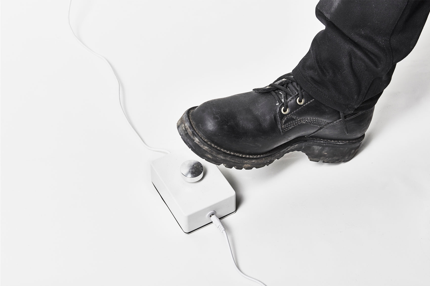 The Induction Wall Light uses a magnetic field to power a 6-foot fluorescent bulb. Stomping on the custom foot switch activates a circuit inside the base, sending electrical current through the wire to the bulb resting in the wall- mounted lamp holder. Comes as a single unit.