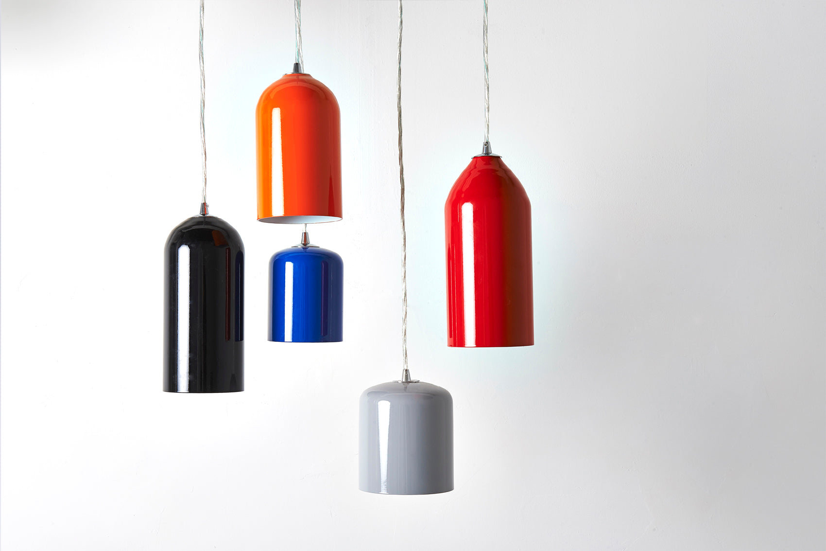 Made from recycled fire extinguishers, these pendant lights are available in two sizes and the following painted finishes:
