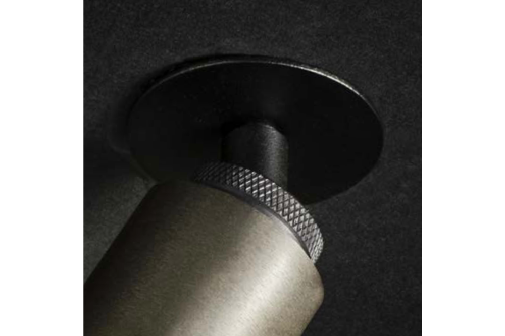 Mini adjustable LED head spotlight with knurled detail and rich tone finishes of bronzes and black.
