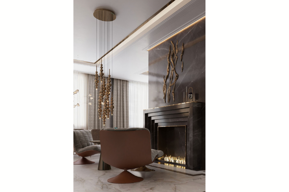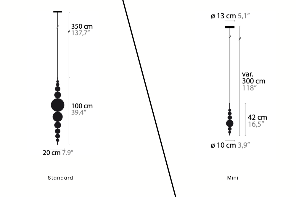 The single pendant drop composition is available in 2 sizes. each with  LED 'candle' down-light.