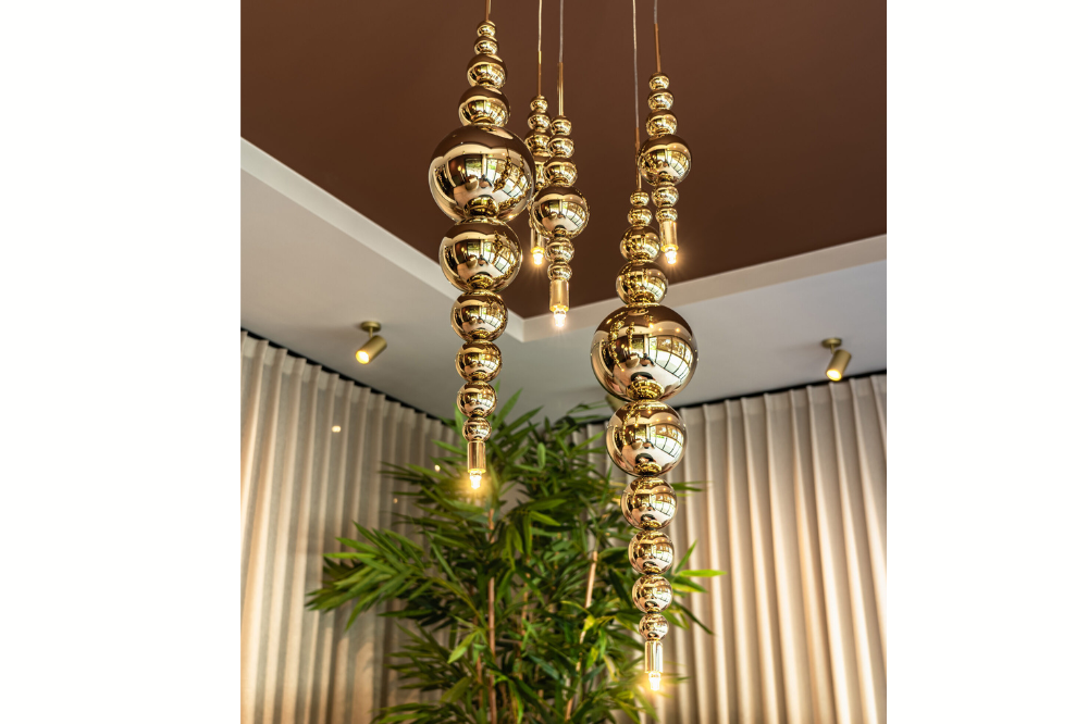 The Tears from Moon collection from Ilfari is a family of glamorous chandeliers and pendants made up of whimsically stacked coloured hand made glass balls that are available in black, white, gold and silver.
