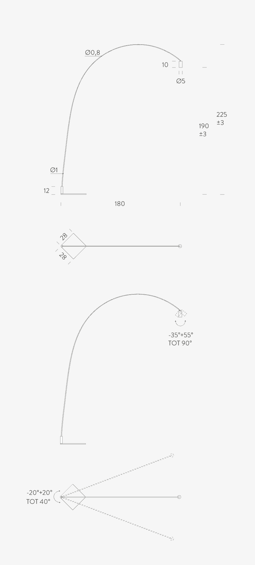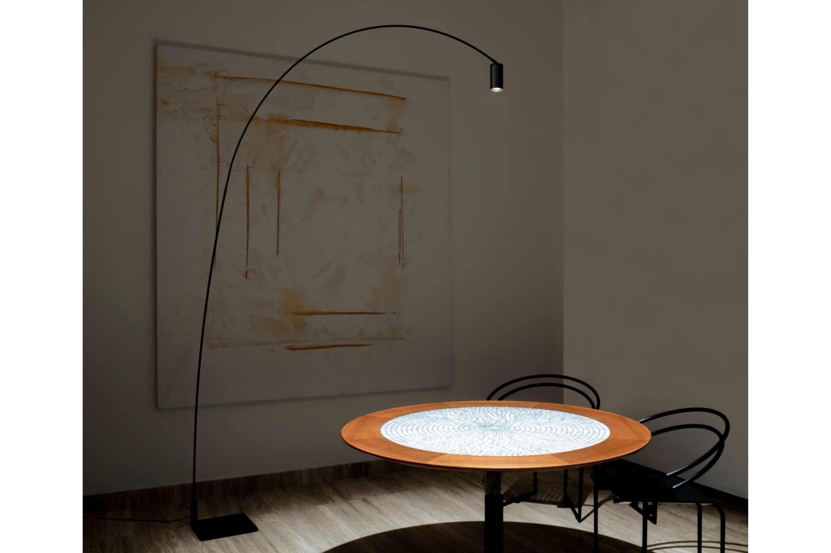 Essential aesthetics and pure functionality. Swivelling arc in painted steel that allows wide movement, and gives the opportunity to both interact and decorate a space. The cylindrical spot, with optional anti-glare filter, allows the light to be directed as required. The light beam is warm and diffuse.