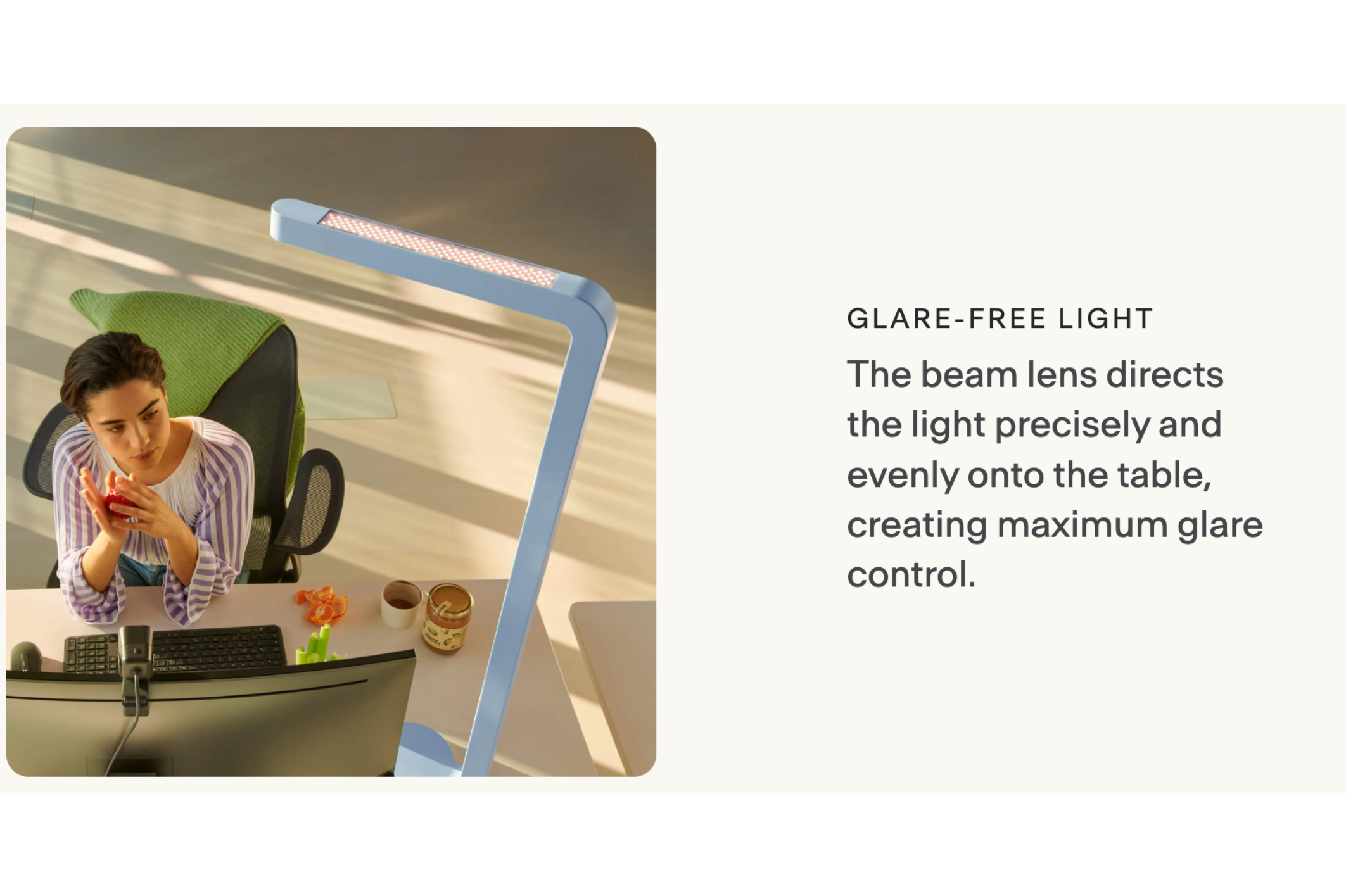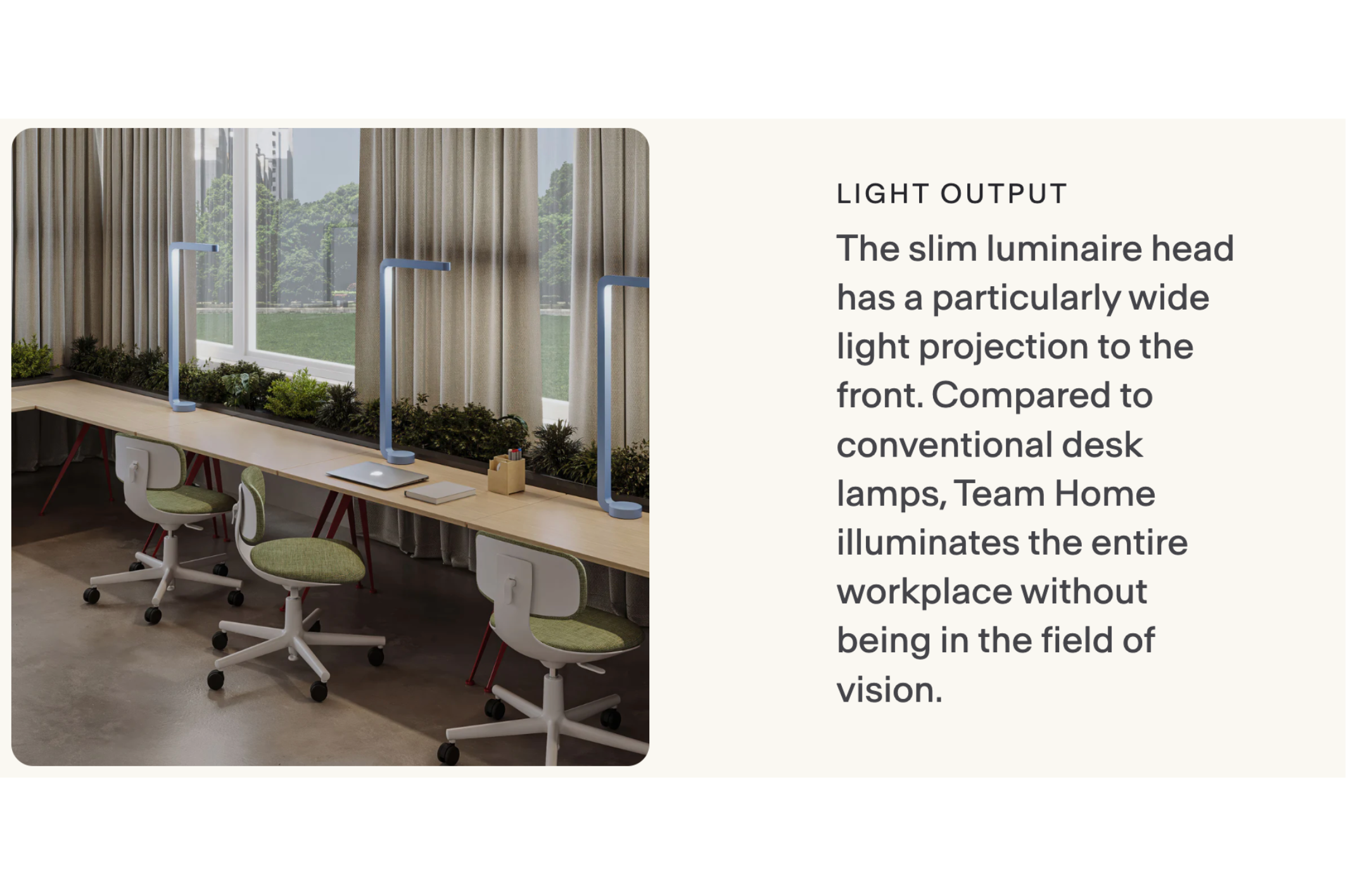 Team Home is the best home office luminaire. Its powerful Beam Lens illuminates your workplace brightly, glare-free and evenly. The indirect light creates a pleasant sense of space, making it easier to work from home for long periods of time.