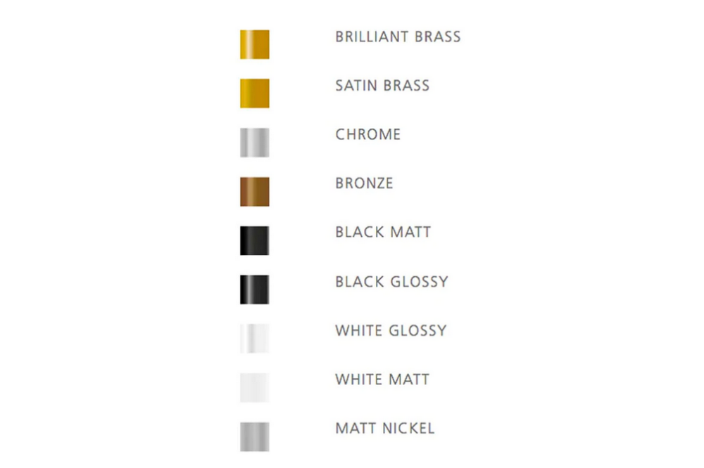 Structure finish options of Brilliant Brass, Satin Brass, Chrome, Bronze, Matt Black, Glossy Black or Matt Nickel. *Specify finish in online order note