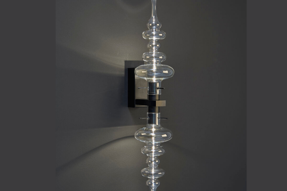 Designed to transform light into a unique spectrum with specialized  techniques created to make these clear mouth-blown glasses in two different sizes. Each pendant is completely handcrafted using the finest quality steel and glass.