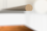 Computer controlled precision cut into one solid piece of oak. White washed and available in 2 sizes. Ceiling canopy in white. Optional cable finish of white, black, or aluminum.
