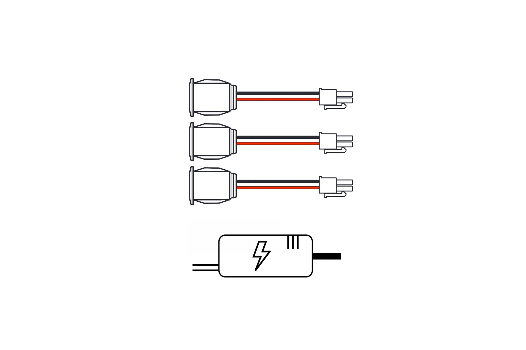 The sauna+ button 3 light kit comes with 3 sauna+ button lights and power source suitable for 3-5 buttons max. Buy individual buttons separate. Each button has an adjustable beam range of 40° to 60° degrees via an Allen key.