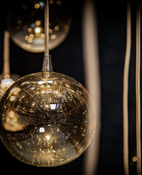 Designed to provide light, air and atmosphere in an impressive yet refined way. Mouth blown glass shades in Clear or Amber and structure finish options of Chrome, Black, or White.