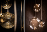 Designed to provide light, air and atmosphere in an impressive yet refined way. Mouth blown glass shades in Clear or Amber and structure finish options of Chrome, Black, or White.