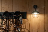 The Bangster Hoody wall is a half glass globe with a hood on a 90º arm bracket