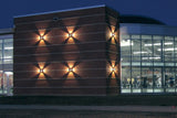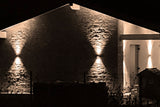 Bivio is a series of wall-mounted mono and multiple emission fixtures designed for wall and facade effect lighting. Various options for combinations of light openings, optics and power allows to create many scenographic effects.