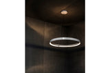 With indirect light from the inside of the curve, this elegant fixture creates a magical hovering light circle.