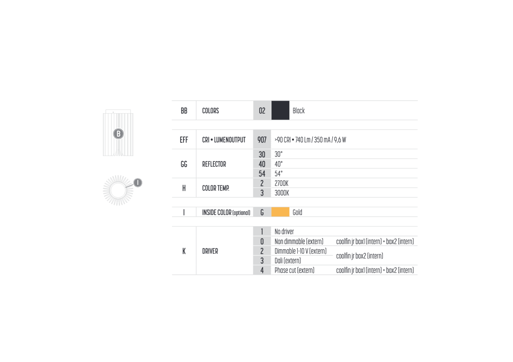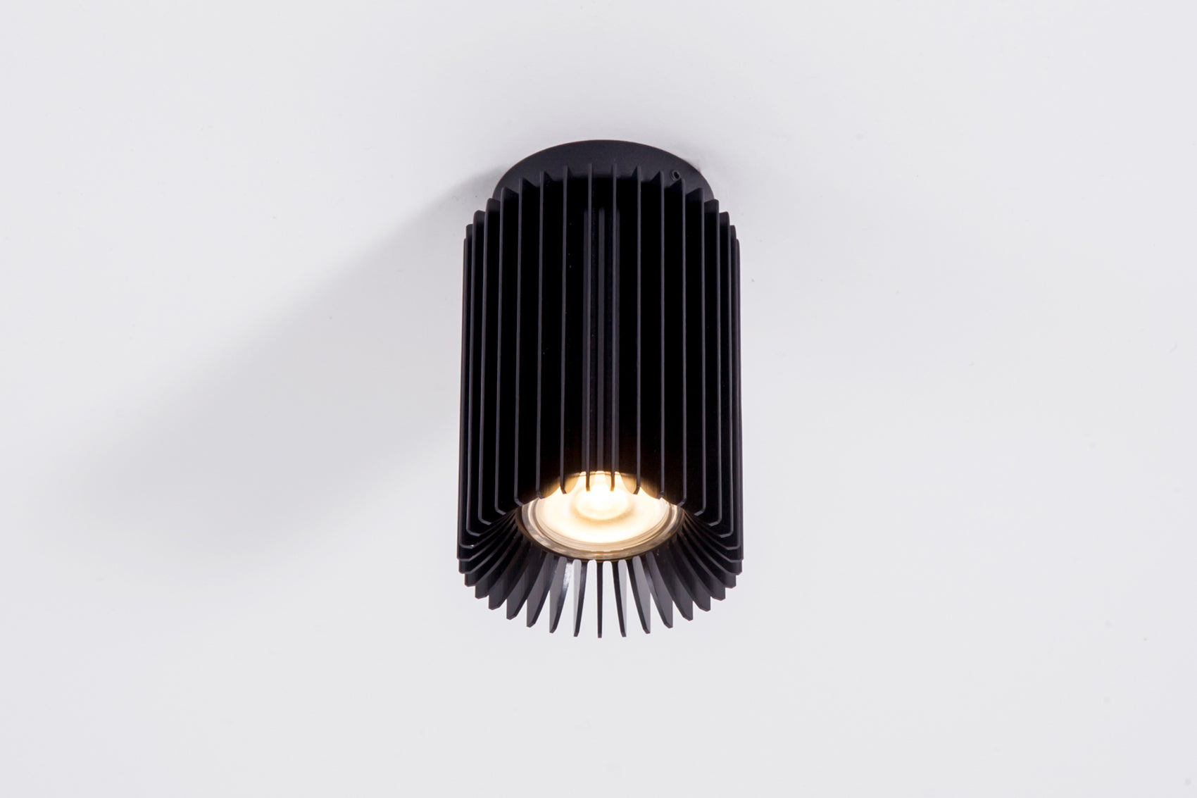 Surface mounted 'finned' LED spotlight that is available in a fixed or adjustable solution. Interior reflector has optional gold finish.