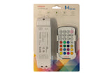 Hand held remote for RGB-W LED. Includes Receiver, Remote Controller and Remote Holder for wall.