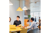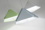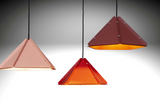 Metal triangular pendant lights in a range of colours, including custom RAL colour solutions available on request.