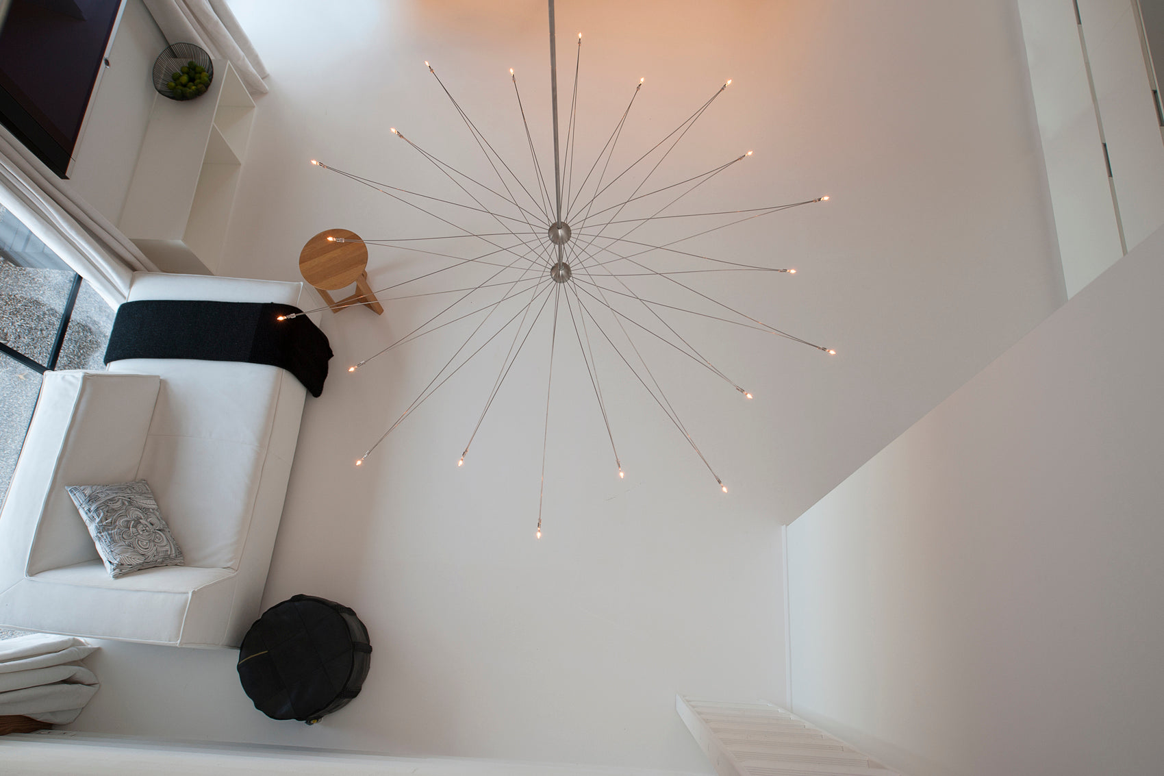A simple box of spheres found in a metal shop laid the foundation for this multi-armed Spoetnik. Inspired by how fantastic our universe is, this modern chandelier shines its beautiful stars. 10 arms. Height is adjustable from 26 cm to 100 cm