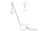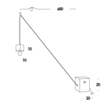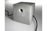 Floor luminaire with pulley for attachment to ceiling. Floor base and head in solid natural cement, with cord finished in a flexible nickel finish. Lamp is switched via floor.