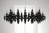 Each composition houses a unique amount of stacked glass balls with LED 'candle' up-lights, with a central bar that houses LED down lights for general illumination.
