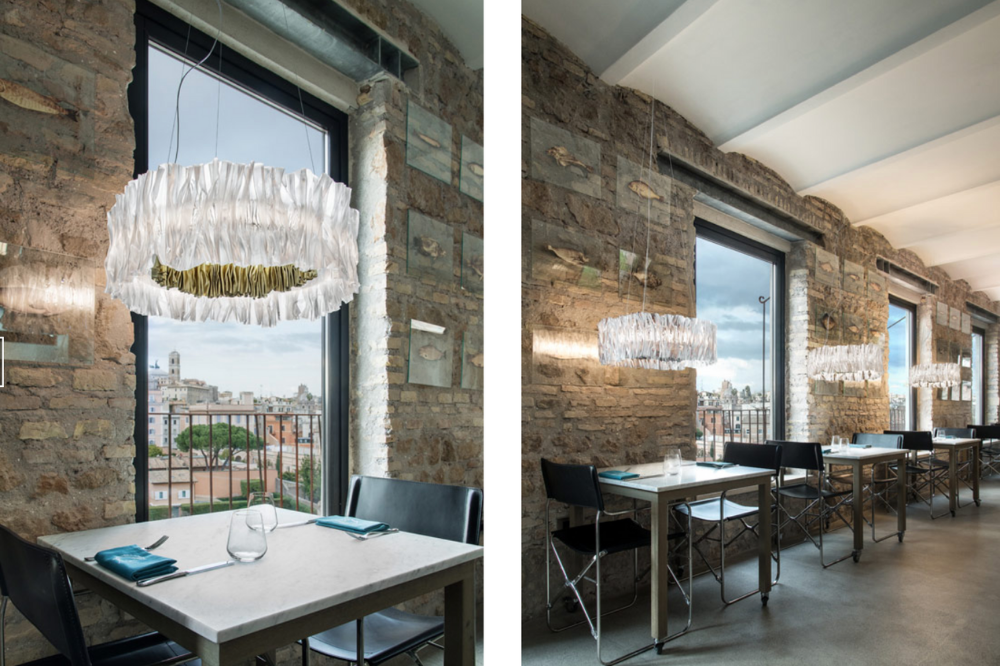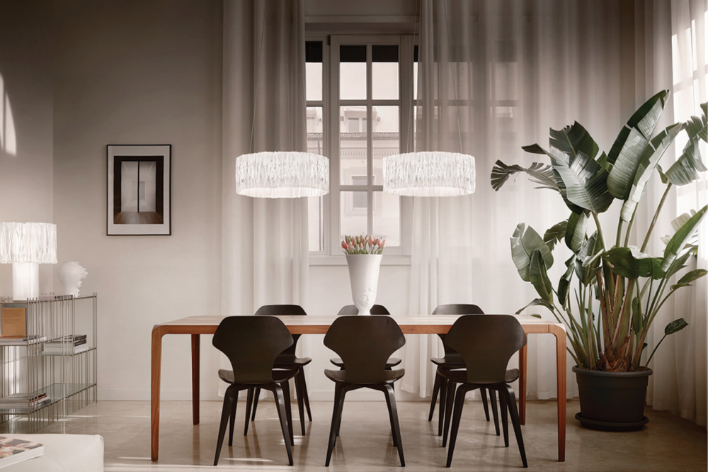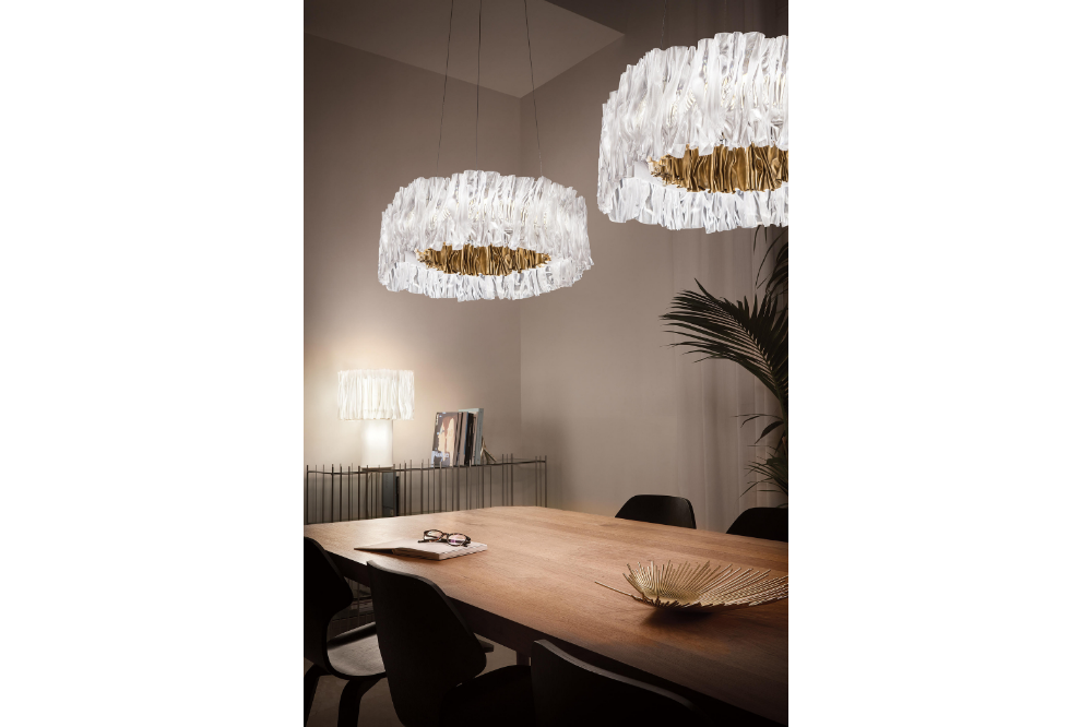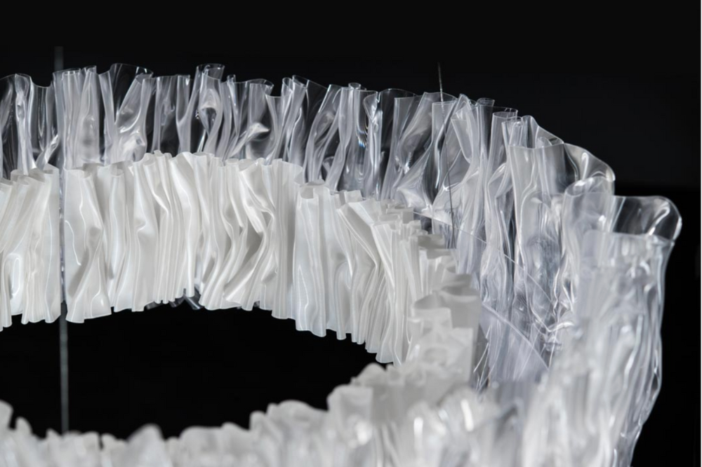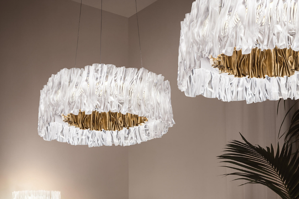 Designer, Marc Sadler, explores the infinite possibilities of Slamp’s technopolymers conjuring the image of a textile plissé and accordion’s bellows.