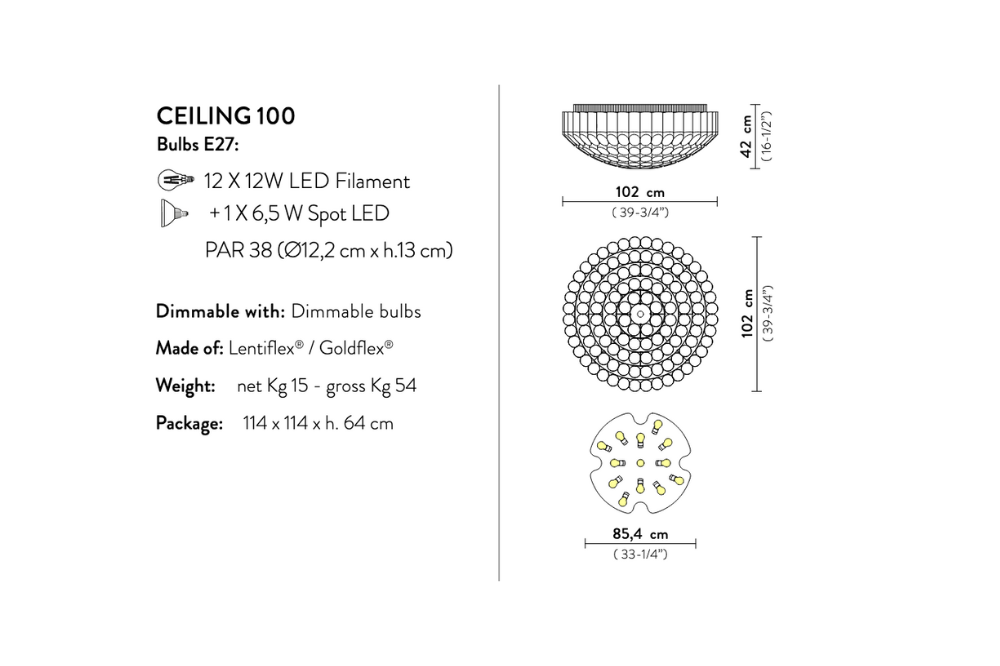 Odeon is shipped fully assembled in protective wood packaging, and is easily installed. The bulbs can be replaced autonomously.