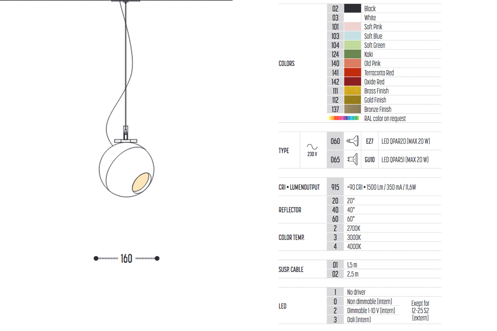 The 12-25 spherical shade pendant is completely versatile with its built-in magnetic suspension point that allows rotation and direction of the shade 360 degrees