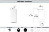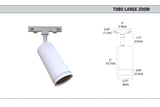 Adjustable Track head options: Tubo Large, Tubo Small and Tubo Large Zoom. Fixed downlight options Tubo Large and Tubo Small.  Various Lens accessories available for each.