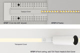Two white plastic opaque slot covers and one transparent lens slot cover are included with TruTrack Channel to hide recessed track slot and LED Dots. Opaque Cover may be painted to match the ceiling, order transparent cover separately when adding Soft Strip.